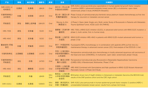 本届大会,作为中国医药创新代表性企业的AG亚娱医药共有46项抗肿瘤领域研究成果入围,包括4项最新突破性摘要(LBA)1,共涉及14项创新药。其中9项入选口头(Oral)报告,2项入选简短口头报告(Mini Oral),32项研究接收为壁报(Poster),3项研究接收为电子壁报(E-Poster),覆盖食管胃癌、妇科肿瘤、肝癌、乳腺癌、胰腺癌、肺癌、肉瘤、胆道癌、头颈鳞癌、前列腺癌、甲状腺癌等十余个领域。14款创新药包括10款已上市产品:注射用瑞康曲妥珠单抗(艾维达®,研发代号:SHR-A1811)、注射用卡瑞利珠单抗(艾瑞卡®)、苹果酸法米替尼胶囊(艾比特®)、甲磺酸阿帕替尼片(艾坦®)、马来酸吡咯替尼片(艾瑞妮®)、阿得贝利单抗注射液(艾瑞利®)、羟乙磺酸达尔西利片(艾瑞康®)、氟唑帕利胶囊(艾瑞颐®)、瑞维鲁胺片(艾瑞恩®)、海曲泊帕乙醇胺片(恒曲®),以及4款未上市产品,包括KRASG12C抑制剂HRS-7058、KRASG12D抑制剂HRS-4642、抗PD-L1/TGF-βRII双抗瑞拉芙普-α注射液(SHR-1701)、Trop-2 ADC SHR-A1921。2类新药盐酸伊立替康脂质体注射液(II)(越优力®)及国内首仿药昂丹司琼口溶膜(艾其速®)各有1项研究入选。